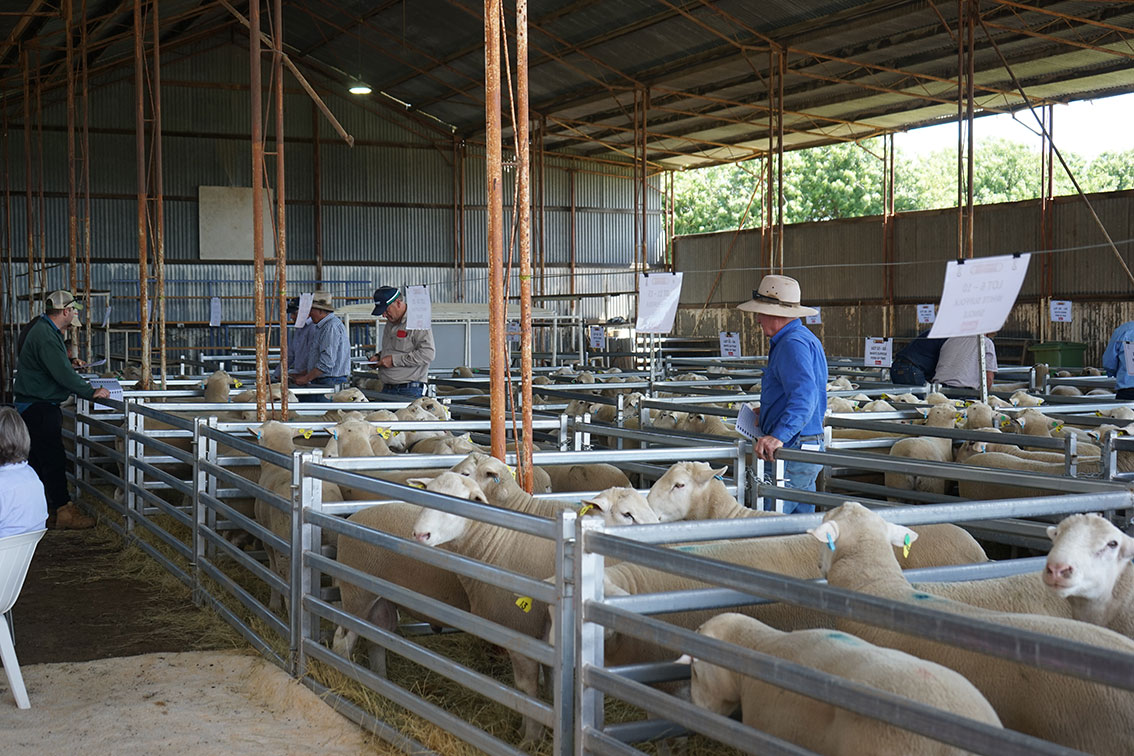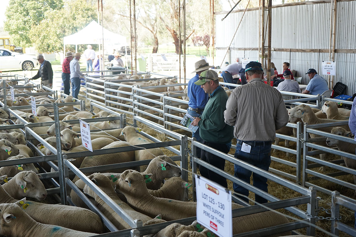 There were some volume buyers – Valeclare Farm in Boorhaman bought 13 White Suffolk rams, and Schoen Pastoral in Corowa bought 11 Southdown rams.